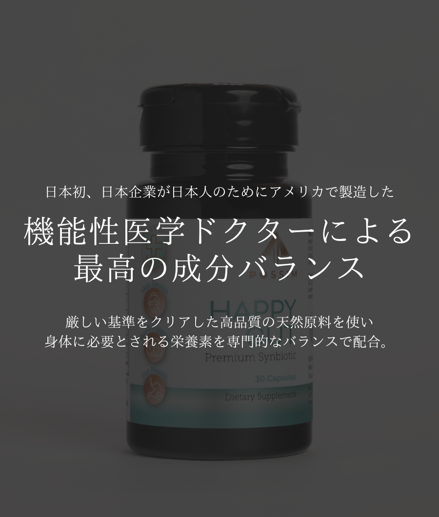 POSSIMサプリは、アジアで活躍する機能性医学ドクターであるDr.CCとの共同開発です。2,000以上の論文に基づいた専門的なバランスで原料を配合。それぞれのサプリメントの成分一覧に書かれた通りに、身体に必要とされる成分・天然原料が入っています。