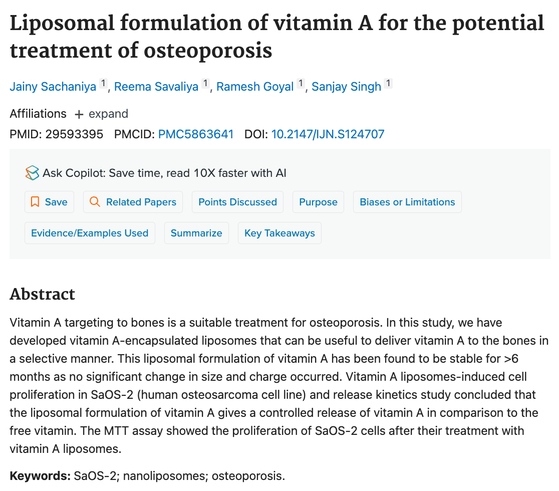骨粗しょう症治療の可能性に対するビタミンAのリポソーム製剤化