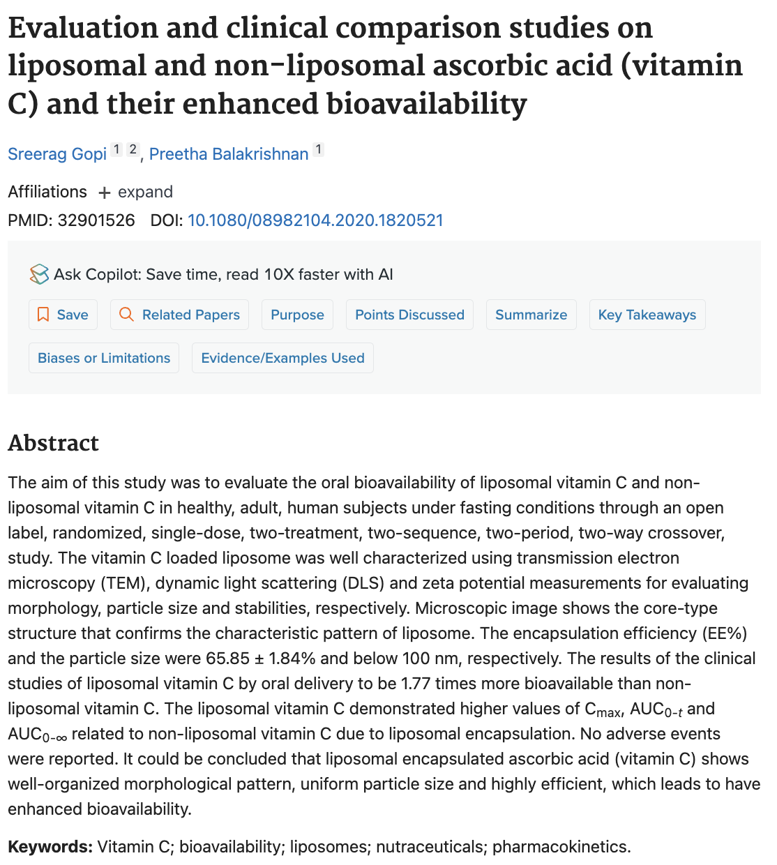 リポソーム化および非リポソーム化アスコルビン酸(ビタミンC)の評価および臨床比較研究とその生物学的利用率の向上